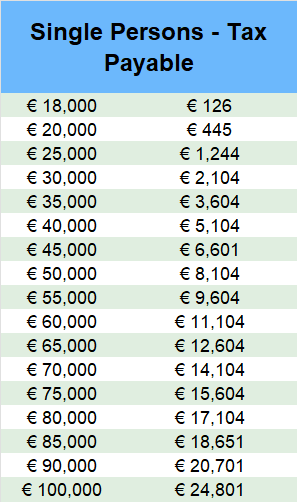 This threshold is increased for dependants; a single person with one child would not pay any income tax if their income was below €23,000; for two children the threshold is €29,000.
