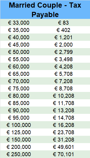 A married couple (or a couple in a civil partnership) would pay no tax on income below €33,000.