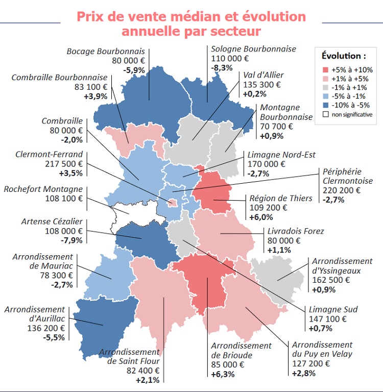 In the Puy-de-Dôme, Haute-Loire and Cantal sales fell by around a quarter, and by -16% in Allier.