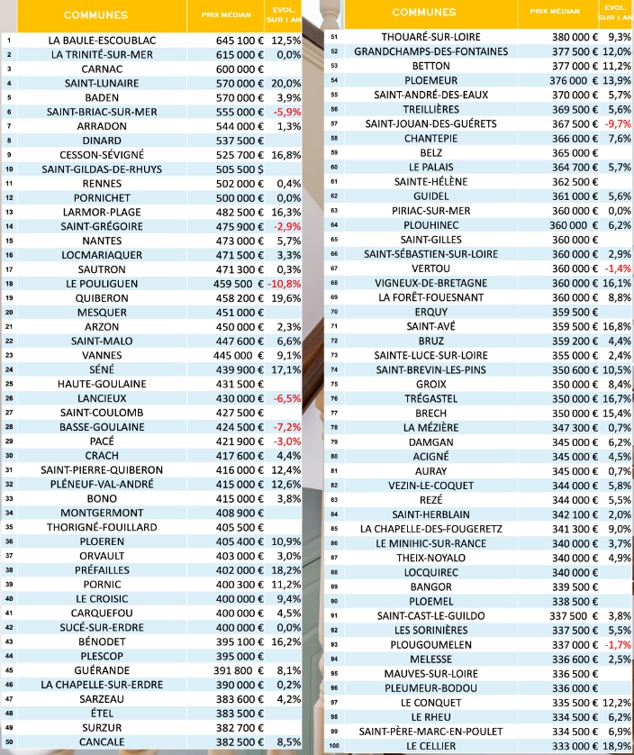 Similarly, in Morbihan, prices range from an average of €125,000 in the Bassin de Gourin to €445,000 in Vannes.