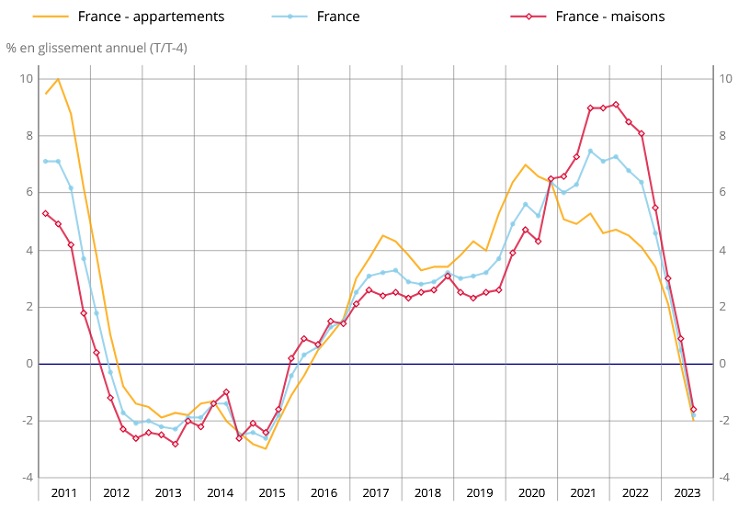 According to the notaires, prices fell nationally by -1.1% in the third quarter of the year in comparison with Q2.
