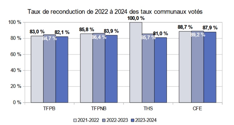 Each year local communes vote on the percentage rate (taux d'imposition) to apply on local rateable values, which serve as the basis for the rates charge.