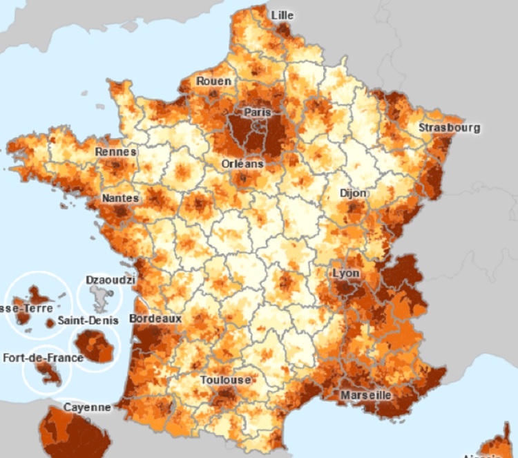 The government has published its annual interactive map of average rent levels in all communes of France.