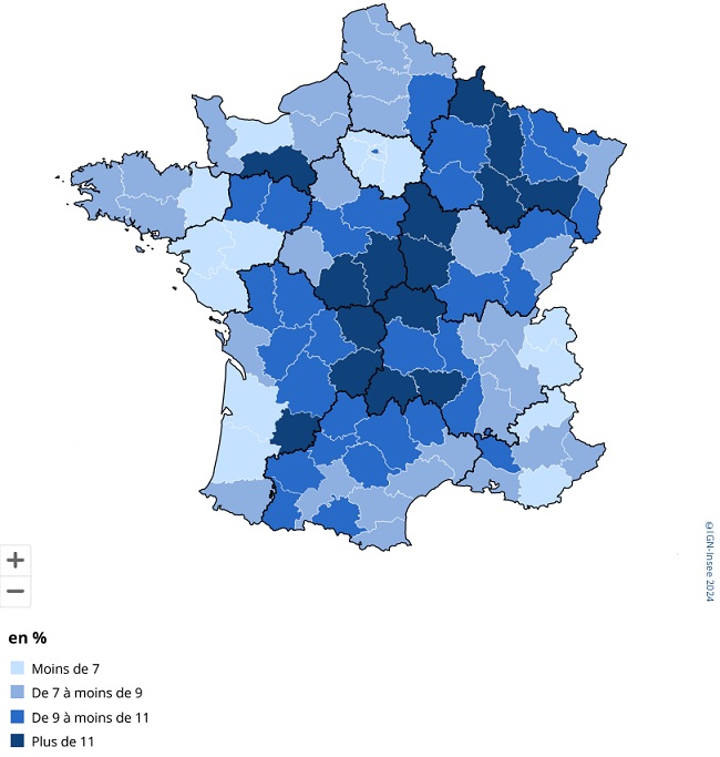 Other departments where the vacancy rate is 11%+ are Ardennes, Corrèze, Haute-Marne, Haute-Loire, Cher, Yonne, Indre, Meuse, Orne, Lot-et-Garonne and Vosges.