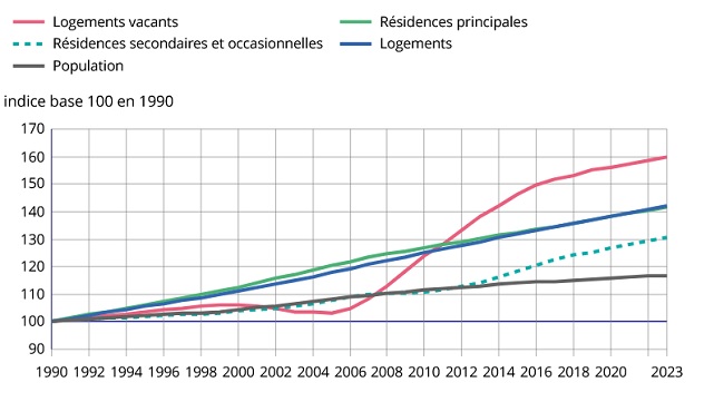 Between 2005 and 2023 the number of vacant homes increased 2.3 times faster than the increase in the total number of homes.